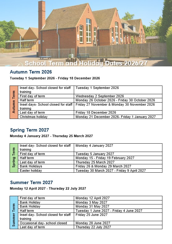Inset day: Monday 29 June 2026 (school closed for staff training)